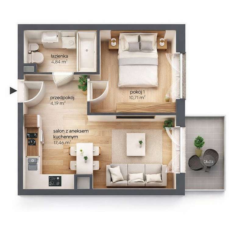 2-pokojowe mieszkanie 46m2 + balkon Bezpośrednio