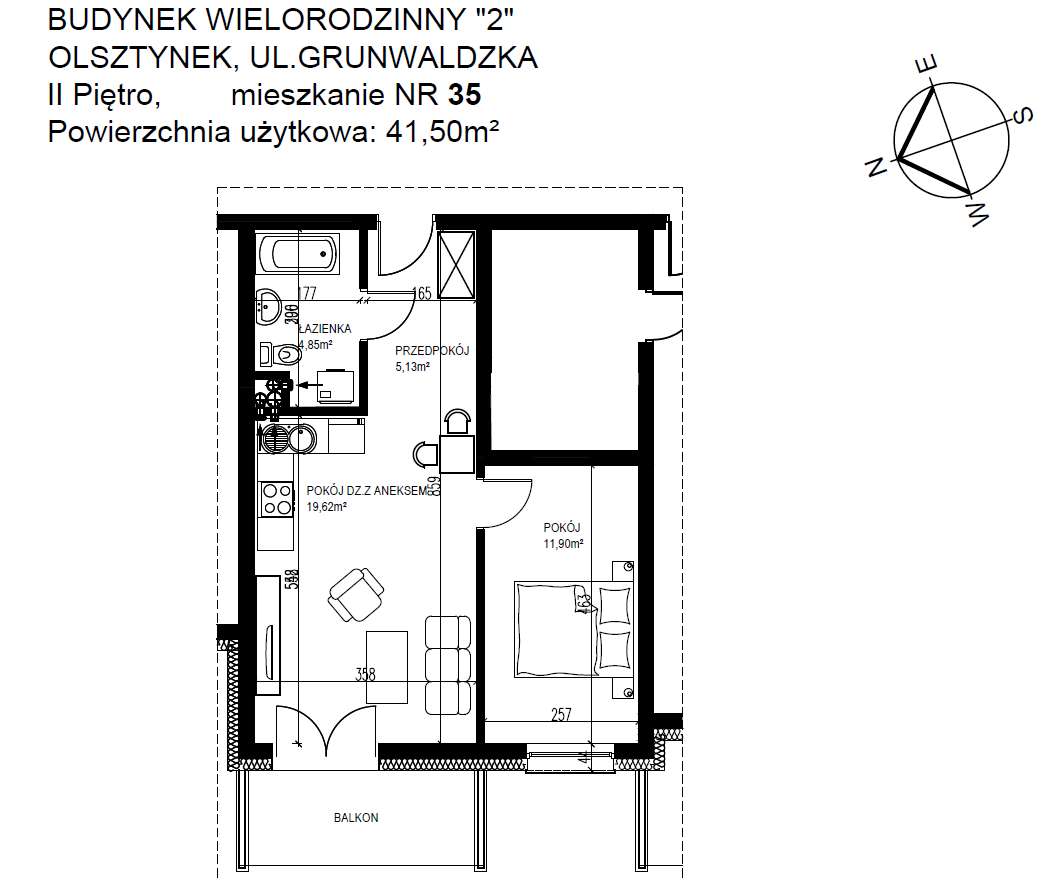 Osiedle Grunwaldzkie 2 pokoje - 45,84 m2