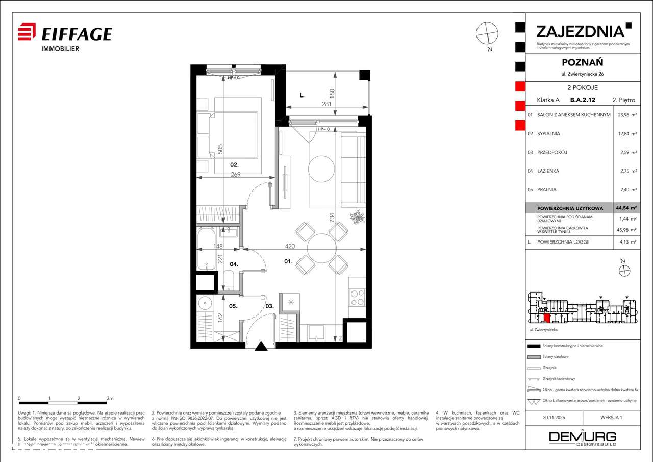 2-pokojowe mieszkanie 44m2 + loggia