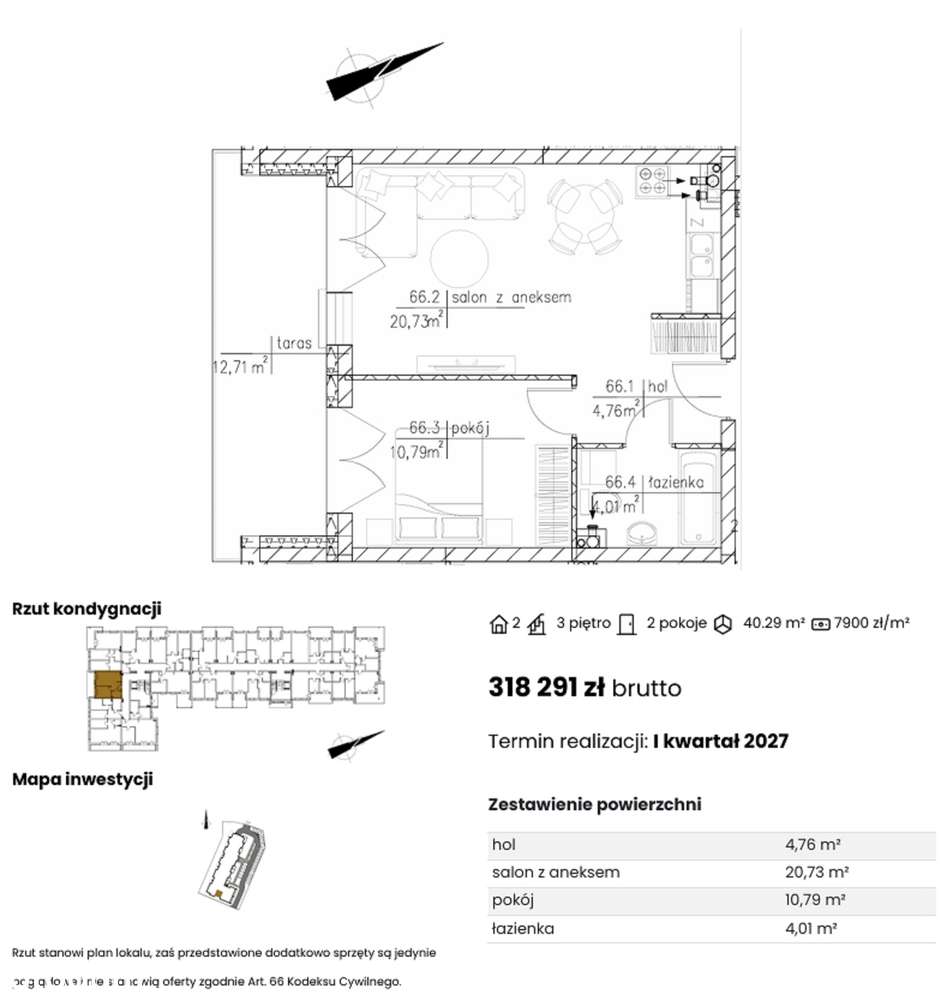 Mieszkanie własnościowe Apartamenty Artyleryjska 40,29 m2