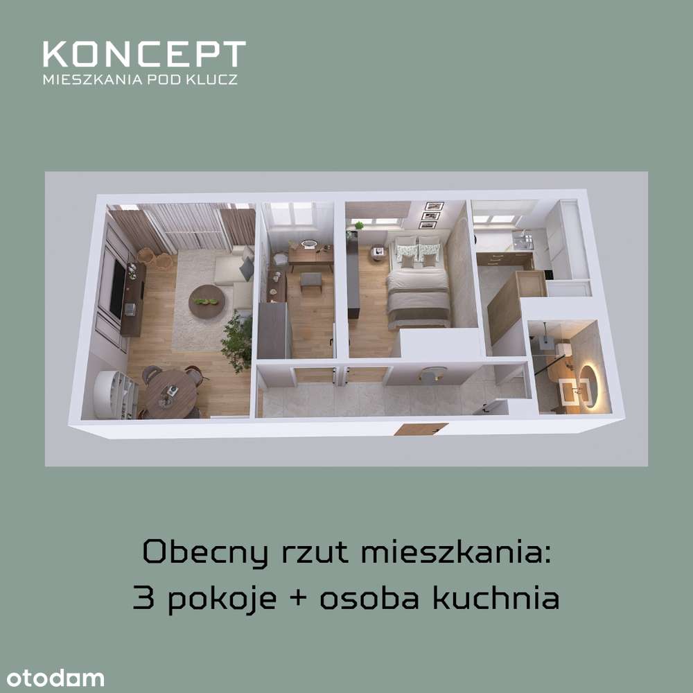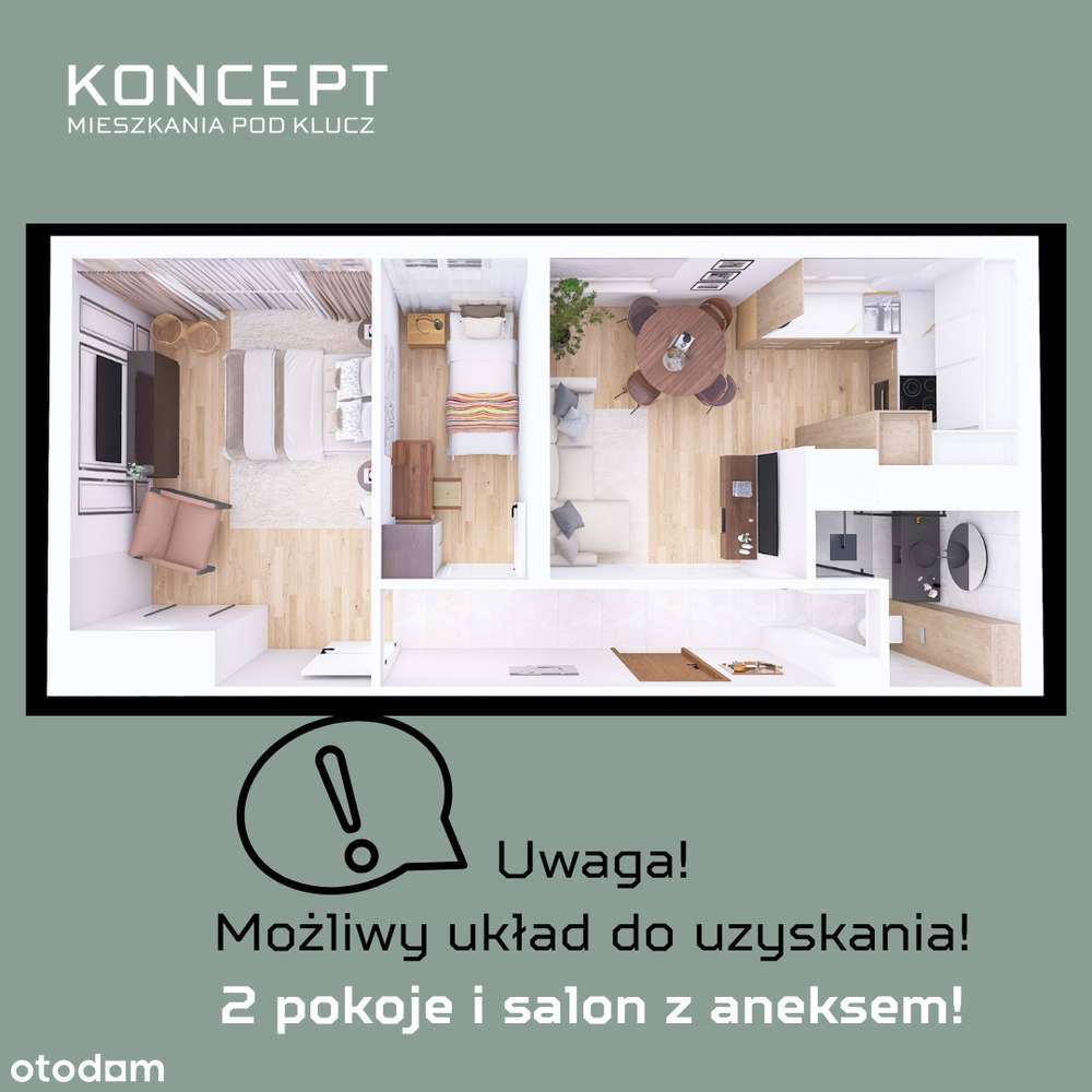Przestronne mieszkanie 3 pokojowe, 42,55 m2