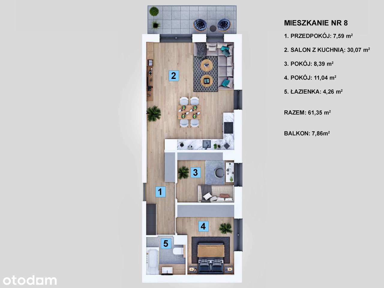 PROMOCJA - 7990 za metr - mieszkanie 3 pokoje 61,35 m2, balkon, GOTOWE