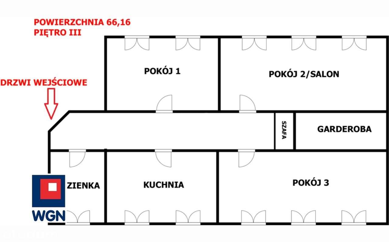 Na sprzedaż 3-pokojowe mieszkanie - 60,5 m2, balkon