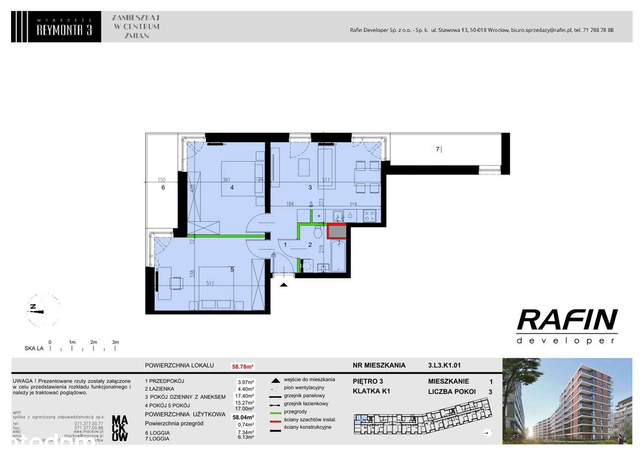 GOTOWE | 3 pokoje | 58,04 m² | Rodzinne | Wybrzeże Reymonta 3