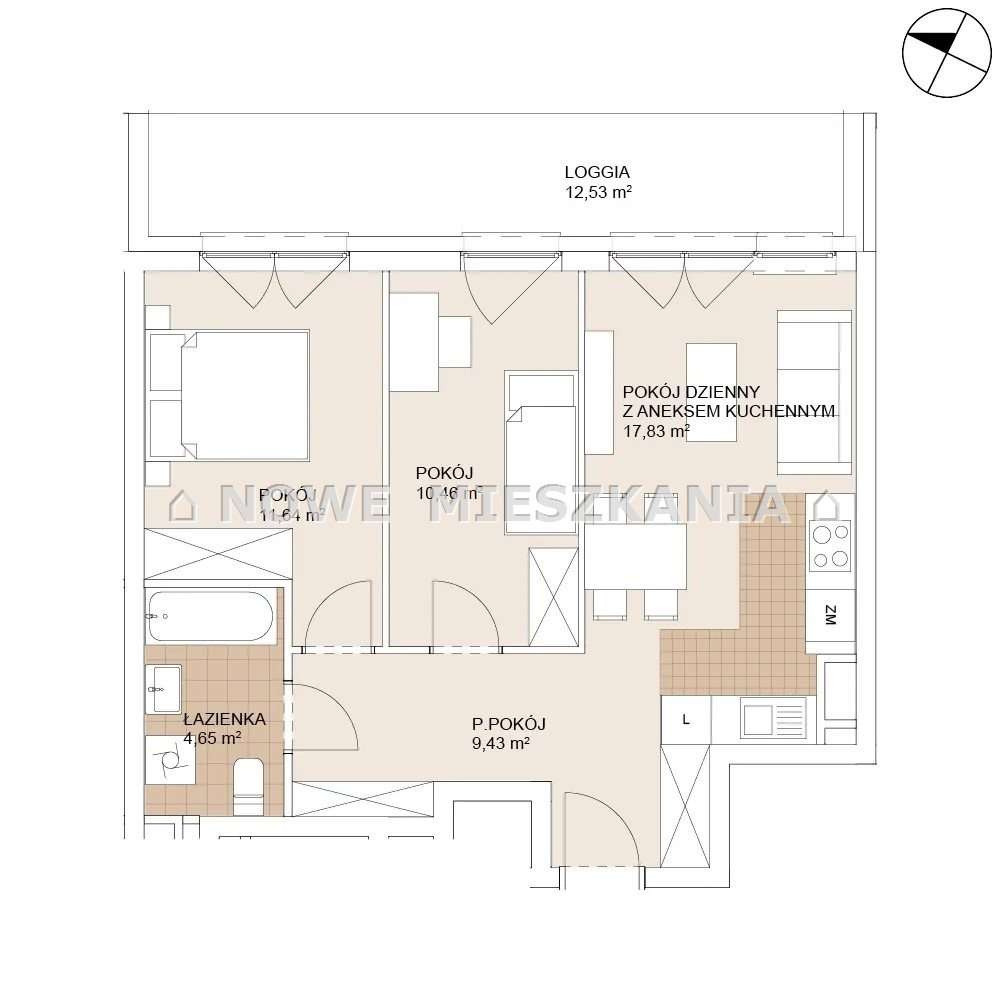 3 pokoje, 56m2, Biskupin