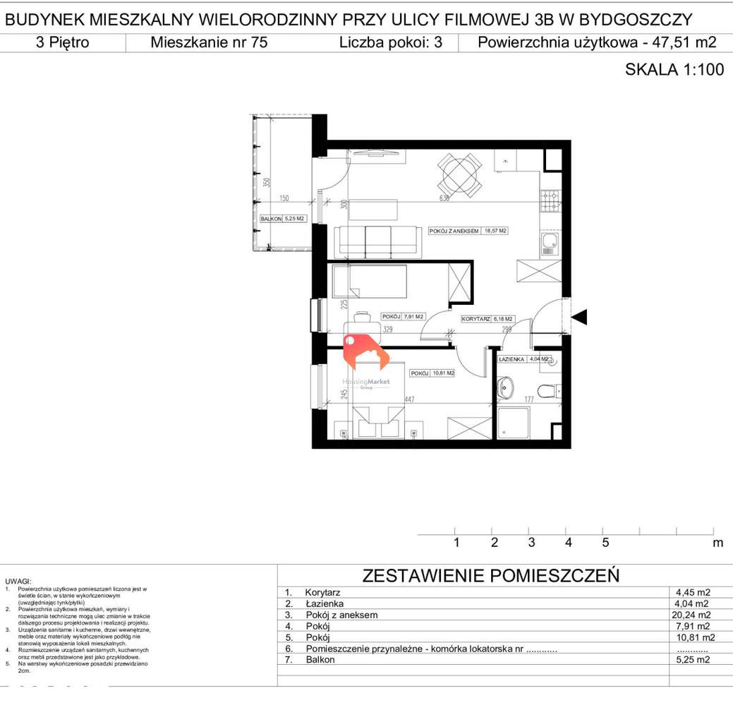 Mieszkanie M3 47 mkw Kapuściska