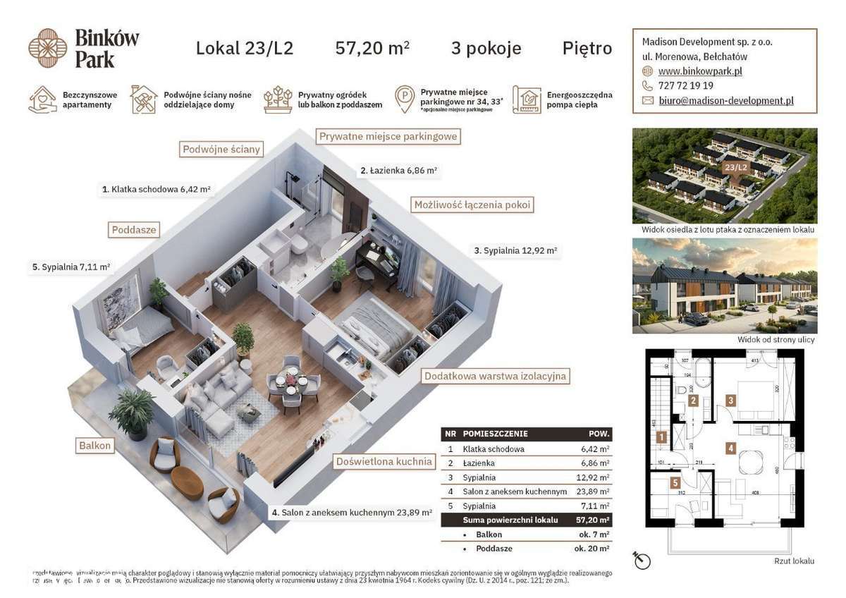 Binków Park - Apartament - Ogródek - L2 - 3 pokoje