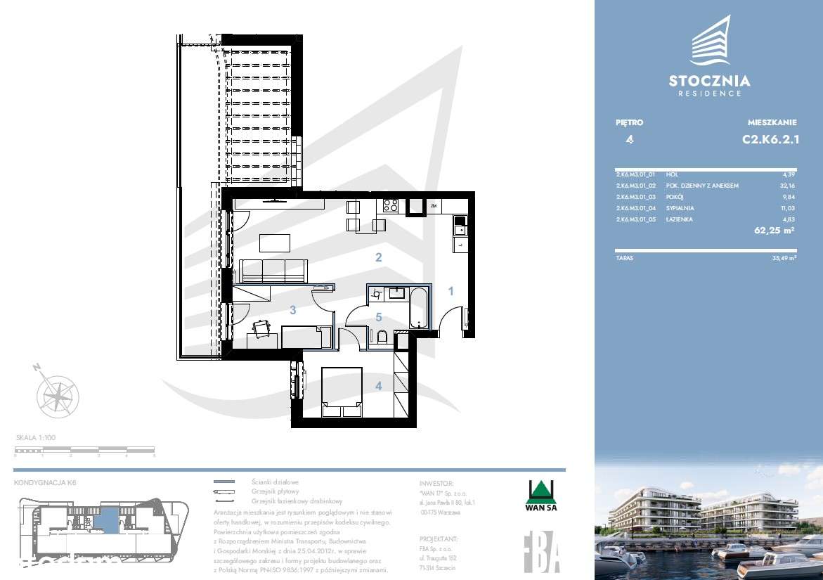 Mieszkanie 62,25 m2 + taras | Stocznia Residence