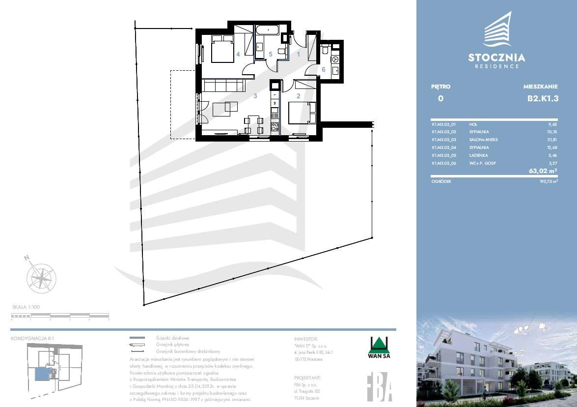 Mieszkanie 63,02 m2 + ogródek | Stocznia Residence