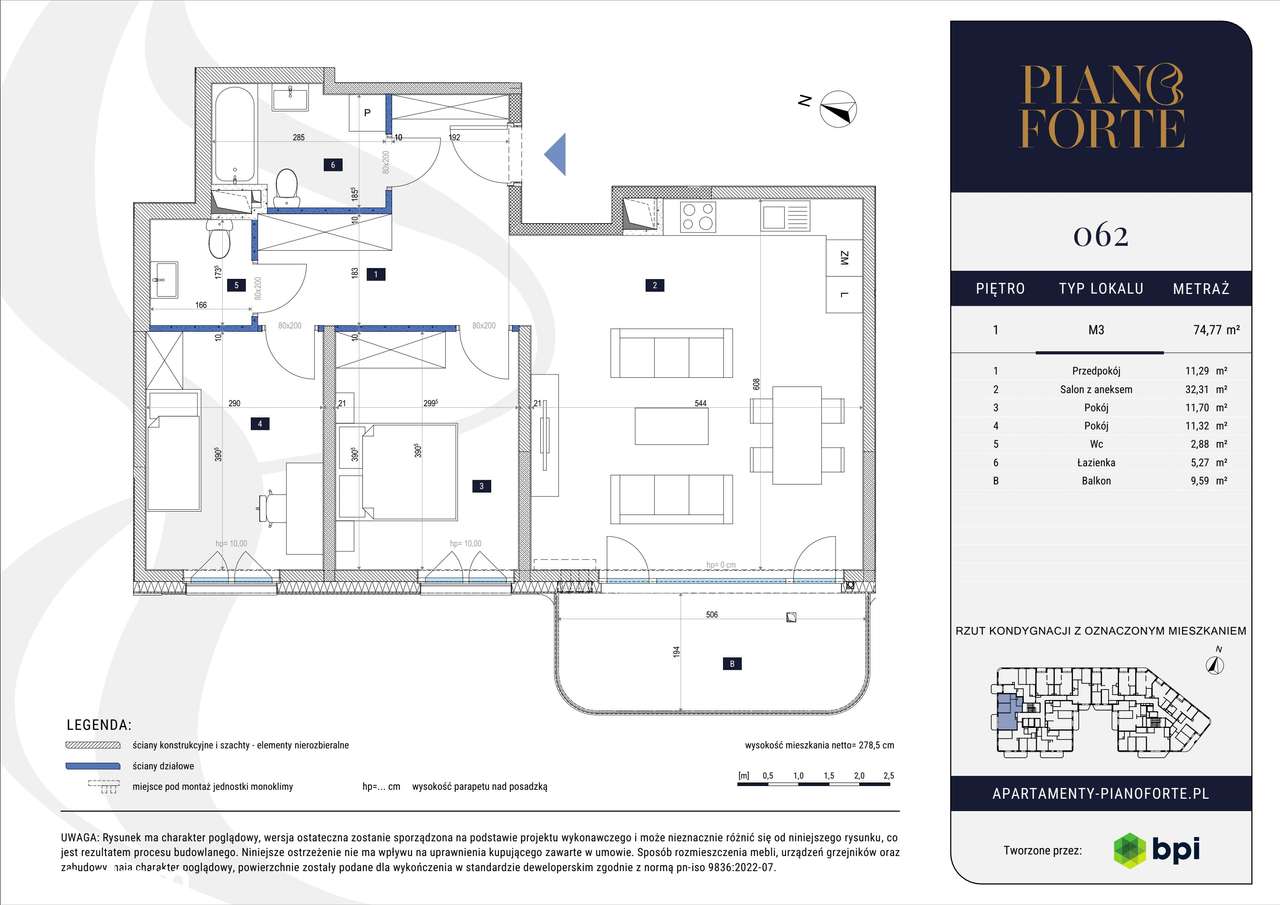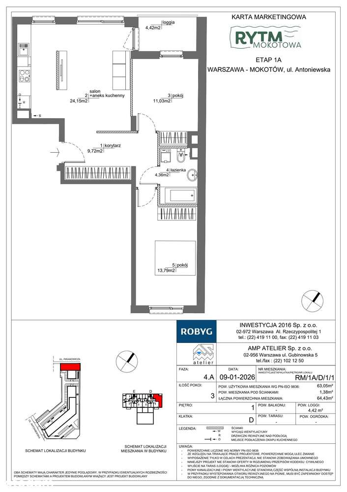 Mokotów | 64,26 m² | 3 pokoje | Gotowe do wprowadzenia