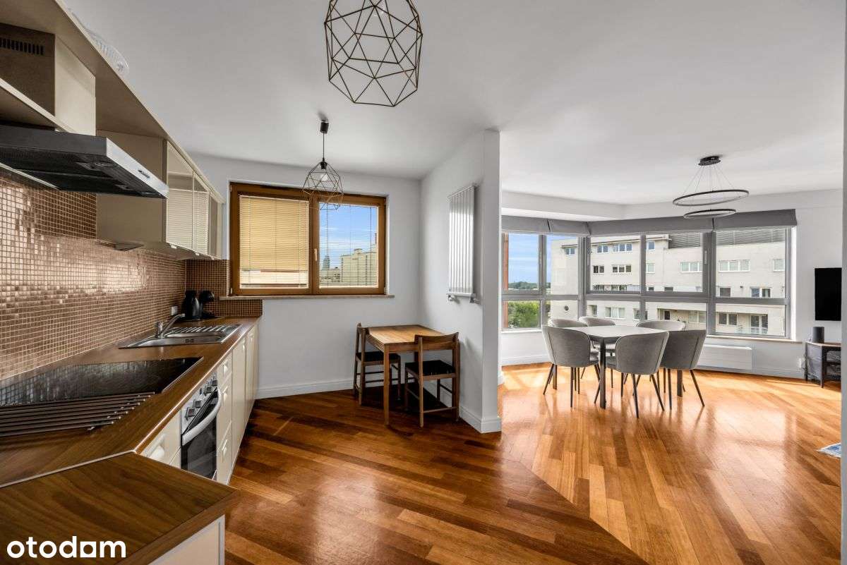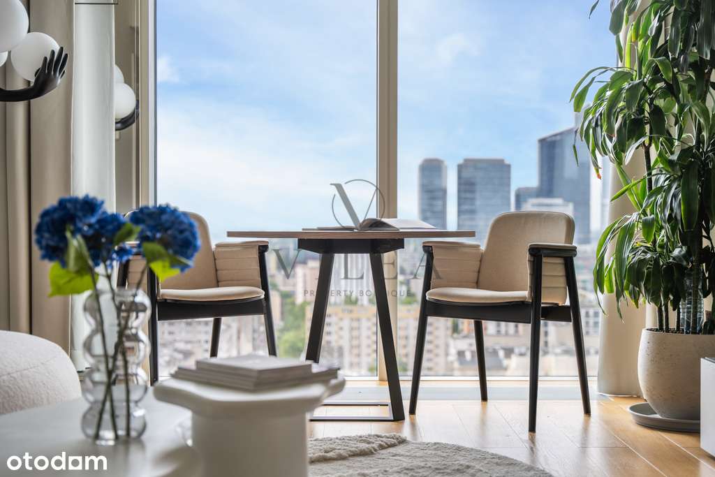 Dwupoziomowe z panoramą Warszawy.