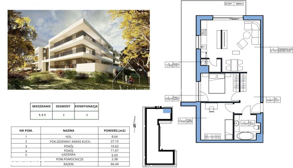 Jasne mieszkanie 66m2- 3 pokoje, garaż, balkon