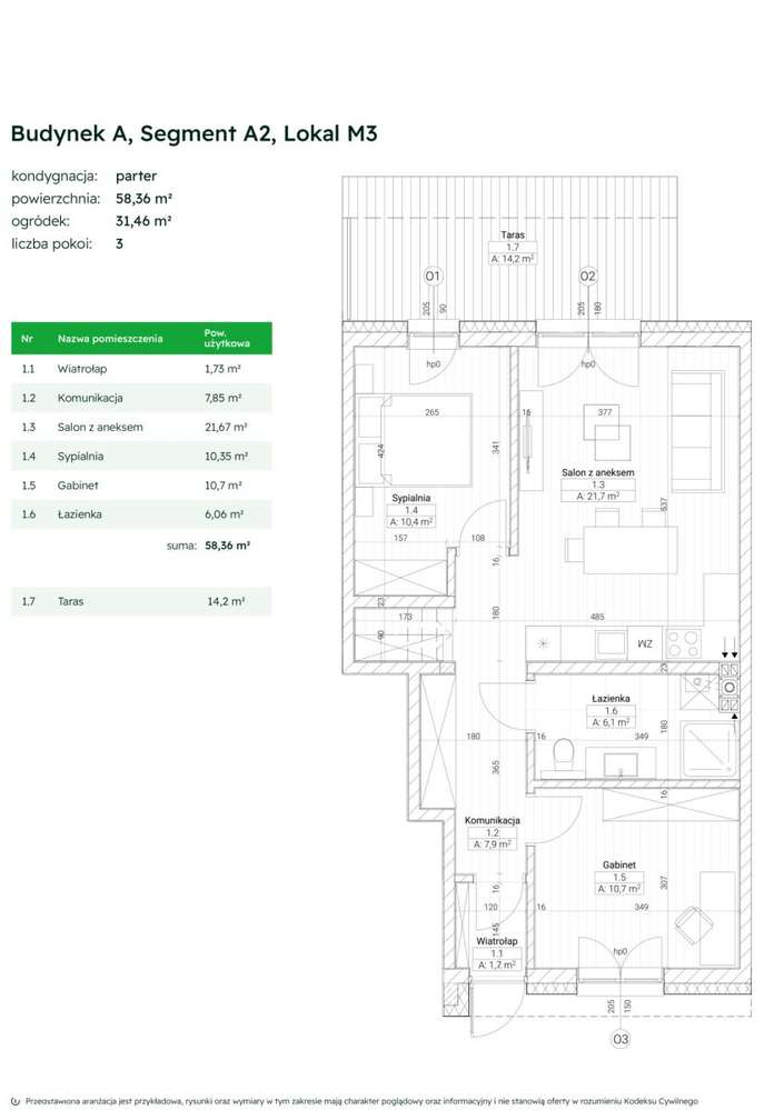 599 000 zł10 264 zł/m²- Liczba pokoi