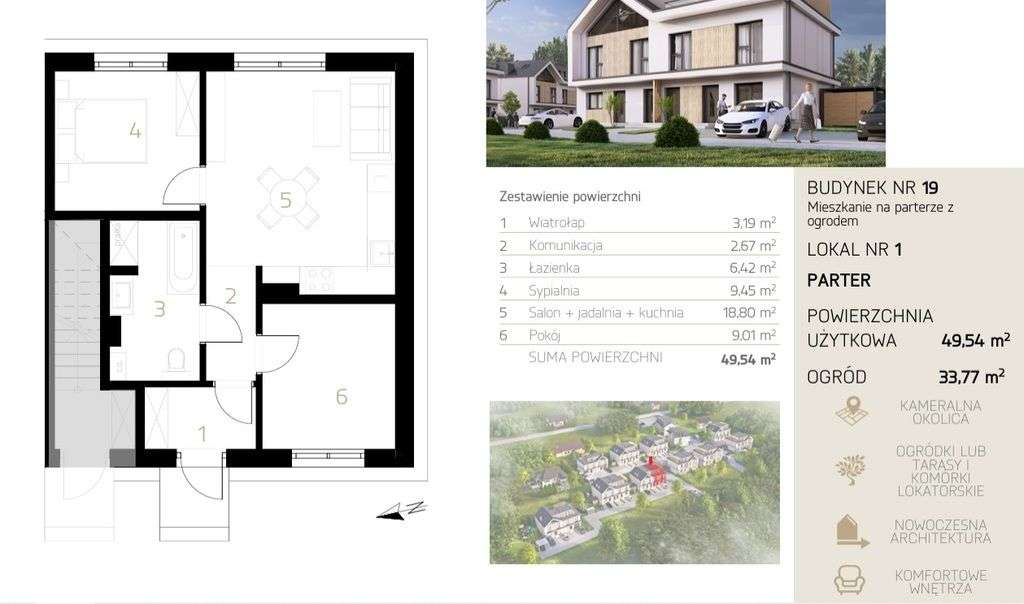 3-pokojowe mieszkanie 54m2 z tarasem i ogrodem