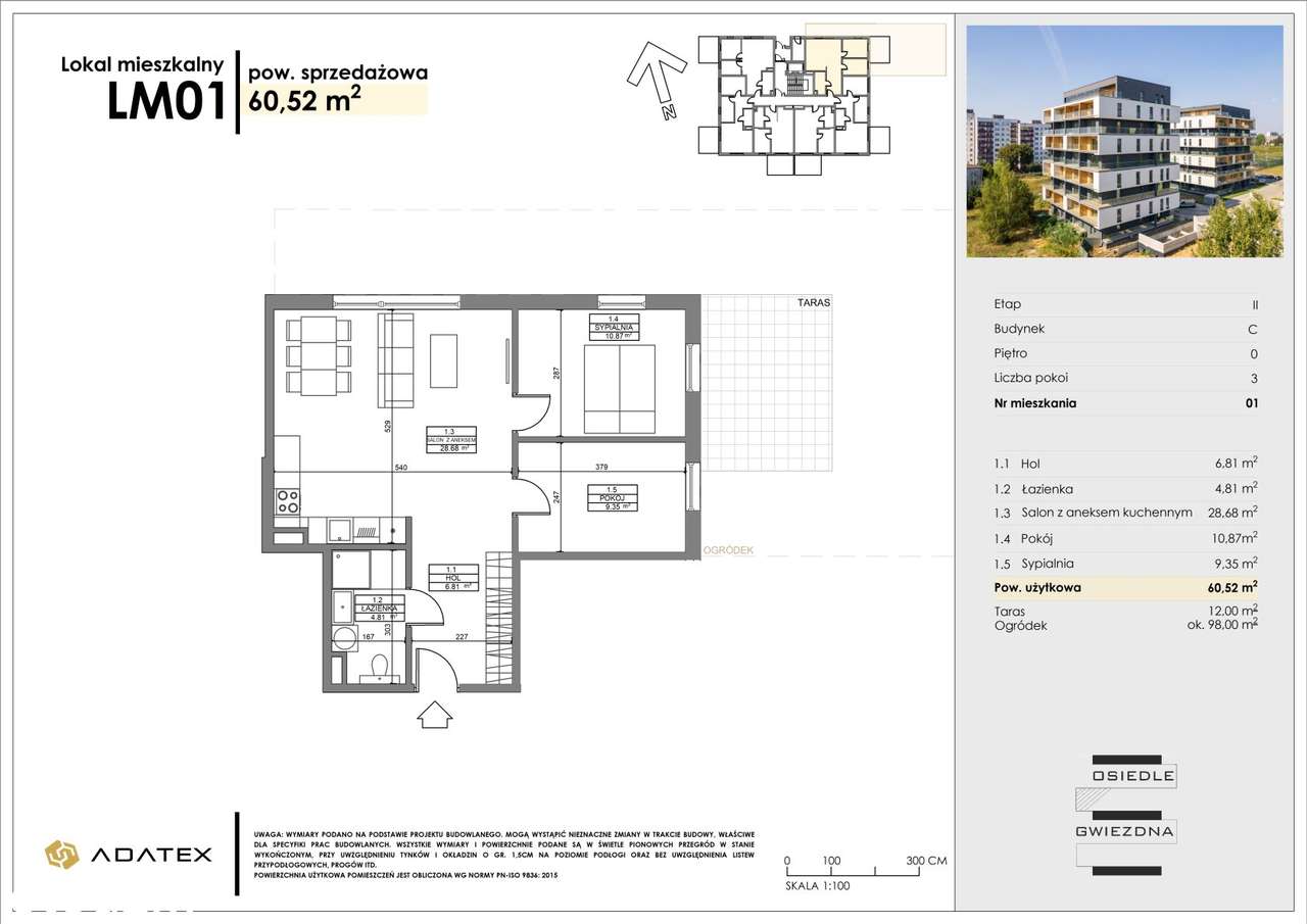 Osiedle Gwiezdna | mieszkanie 3 pokoje | OGRÓDEK | C1