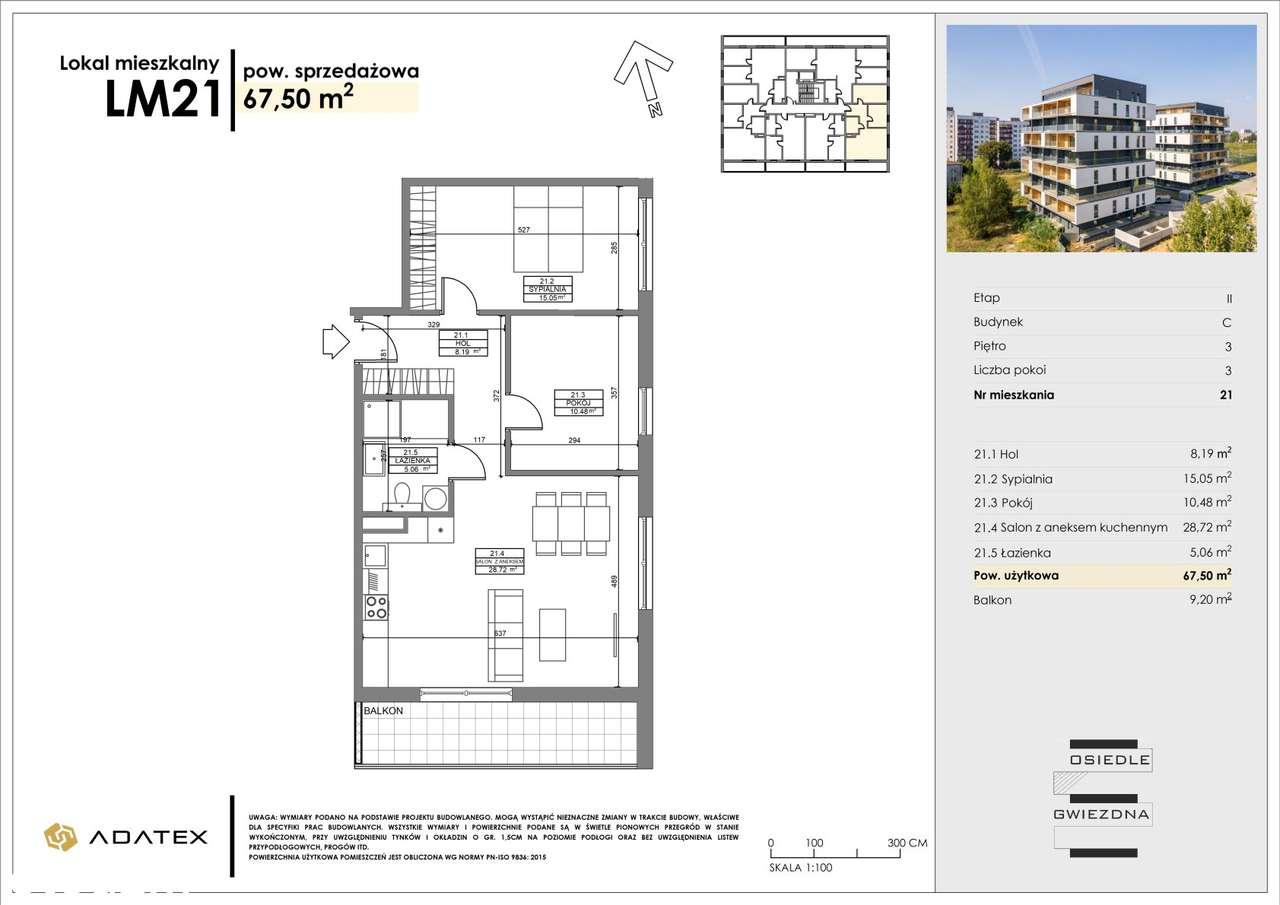 Osiedle Gwiezdna | mieszkanie 3 pokoje | PRZESTRONNE | C21
