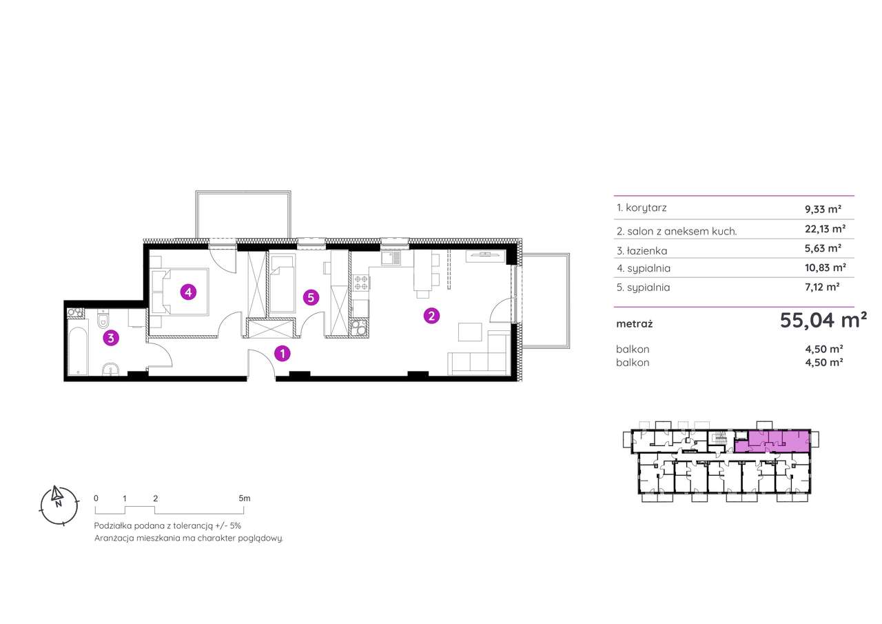 3-pokojowe mieszkanie 58m2 + 2 balkony