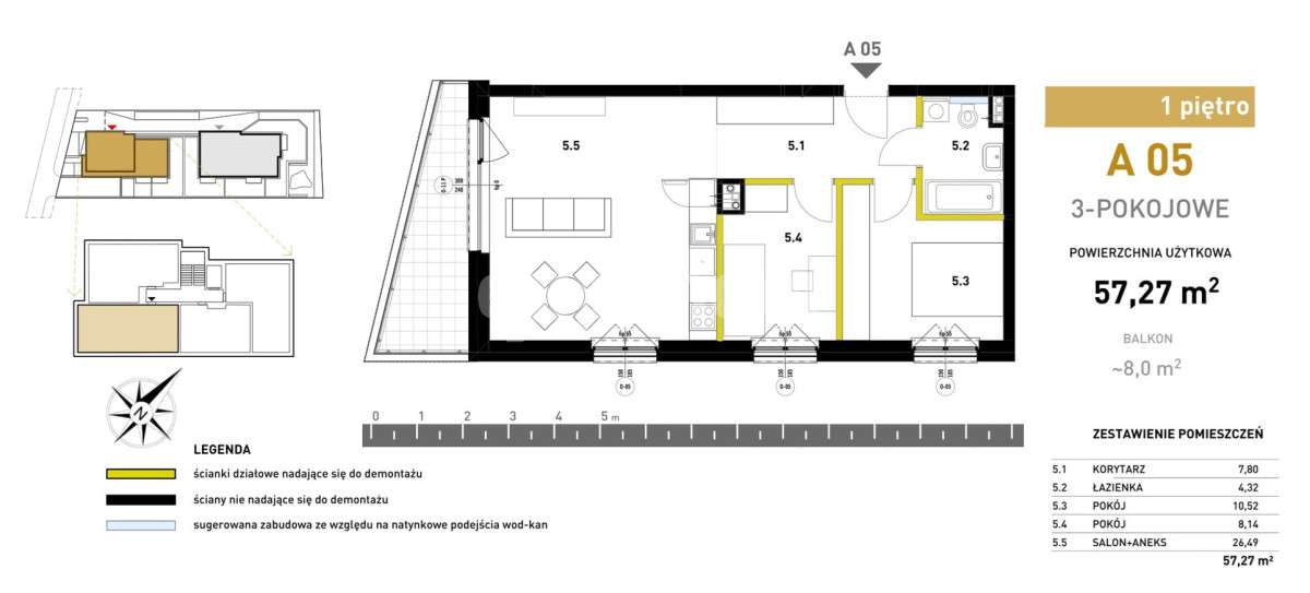 3-pokojowe mieszkanie 61m2 + balkon Bez Prowizji