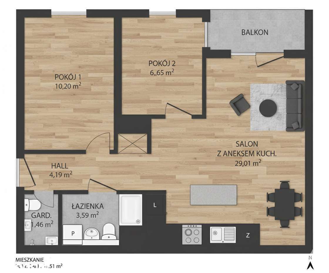 3-pokojowe mieszkanie 68m2 + balkon
