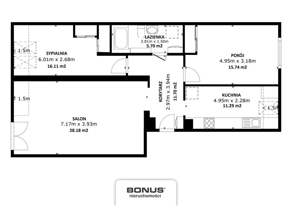 3 pokoje, 65 M