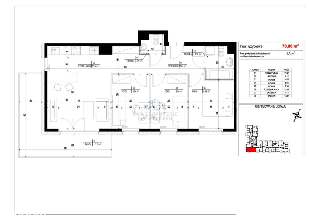 Deweloperskie 69m2,4 pok,balkon, 3 p.,bez prowizji