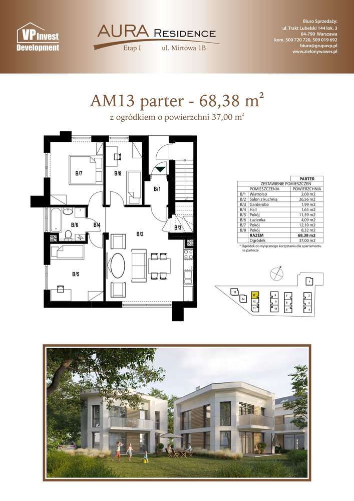 4-pok. mieszkanie 68,38m2+ogródek 37m2
