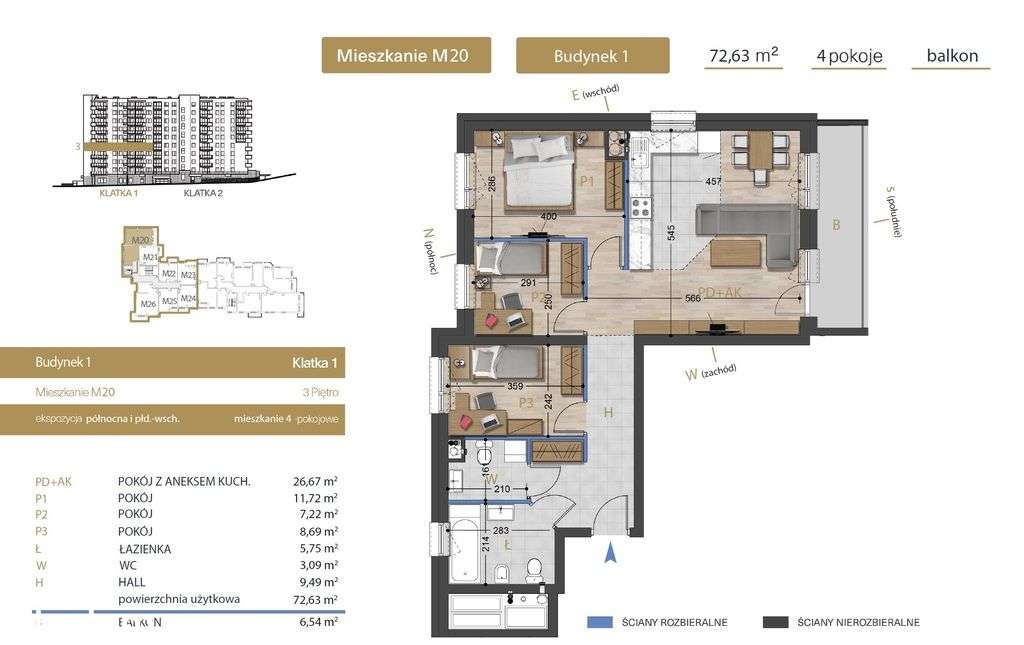 Przestronne 4 pokoje 72 m² z balkonem – łazienka z oknem