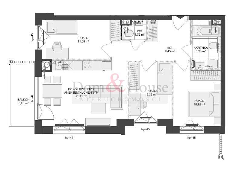 4-pokojowe mieszkanie 67m2 + 2 balkony