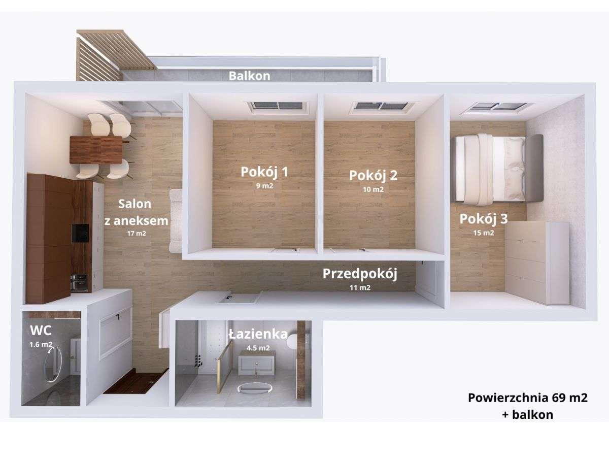 4-pokojowe mieszkanie 72m2 Bezpośrednio