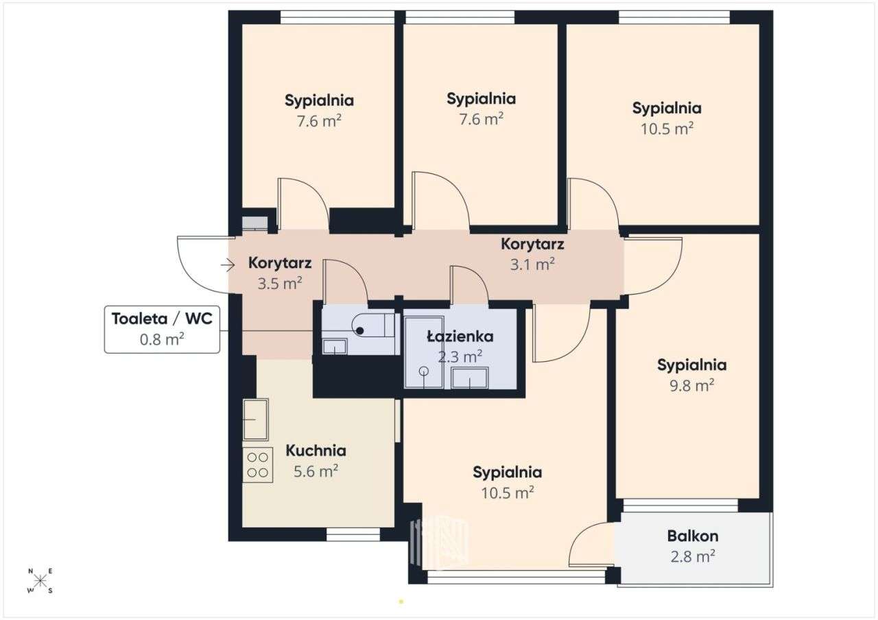5 pokoi | Świetna lokalizacja | Balkon | Klimatyzacja , 81.18 m2