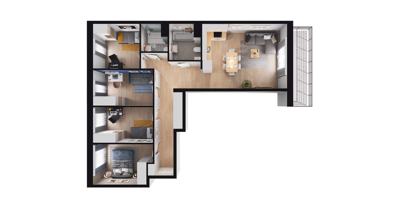 5-pokojowe mieszkanie 101m2 + 3 balkony