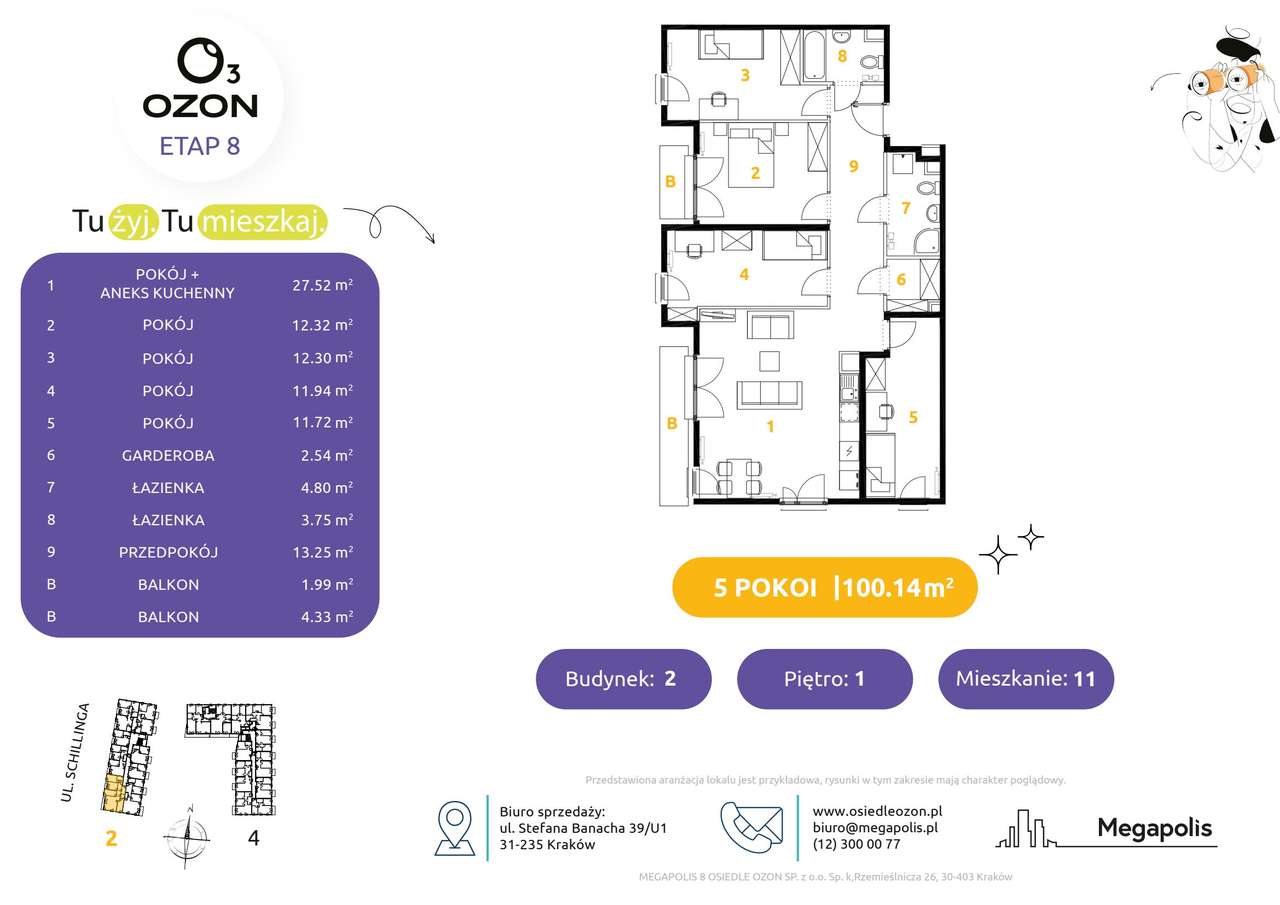 5-pokojowe mieszkanie 101,58 m² | 2 balkony | Banacha 12 | Nr 1