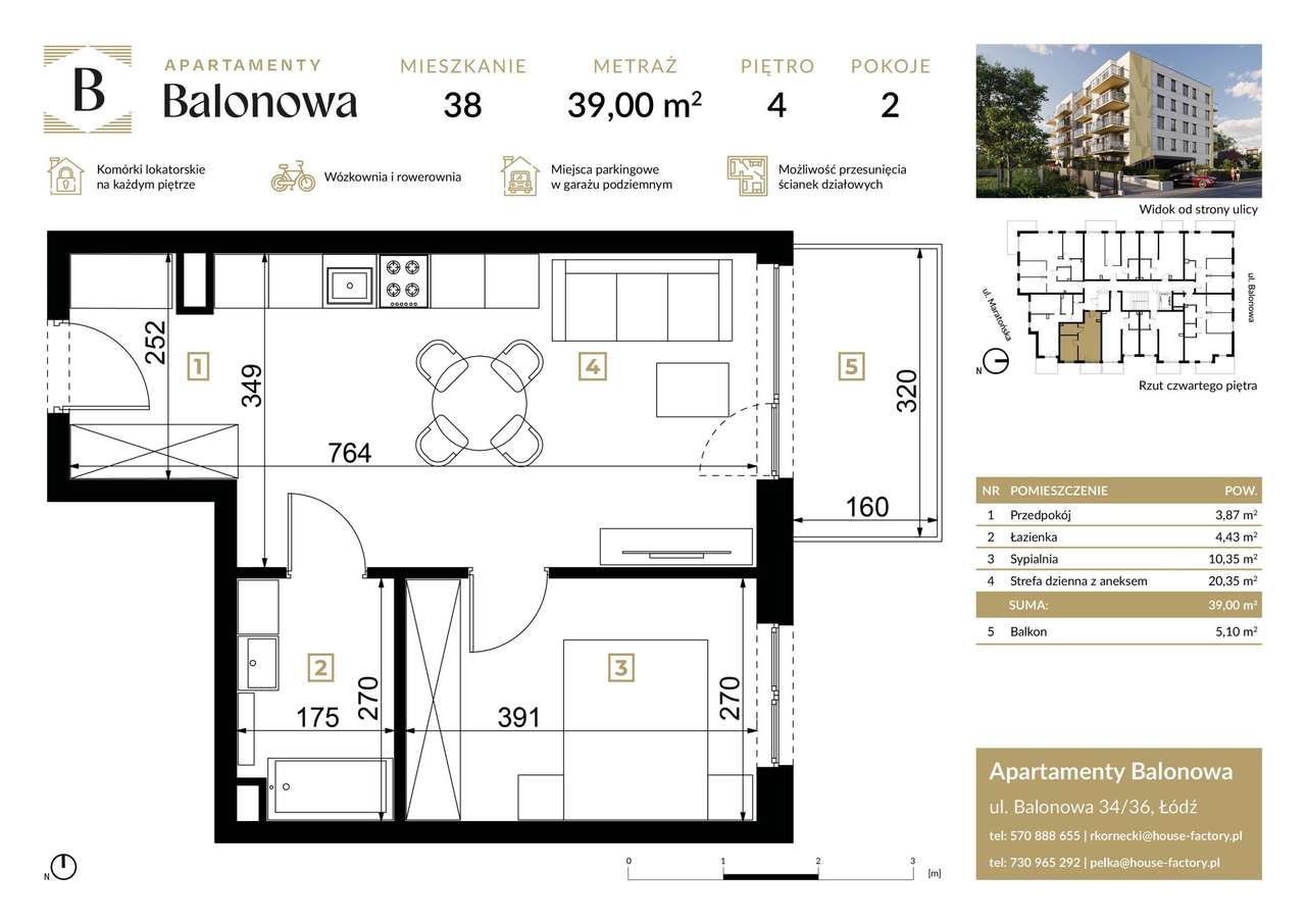 2-pokojowe mieszkanie 38m2 + balkon