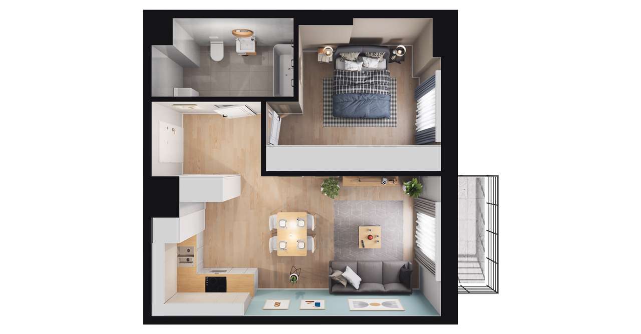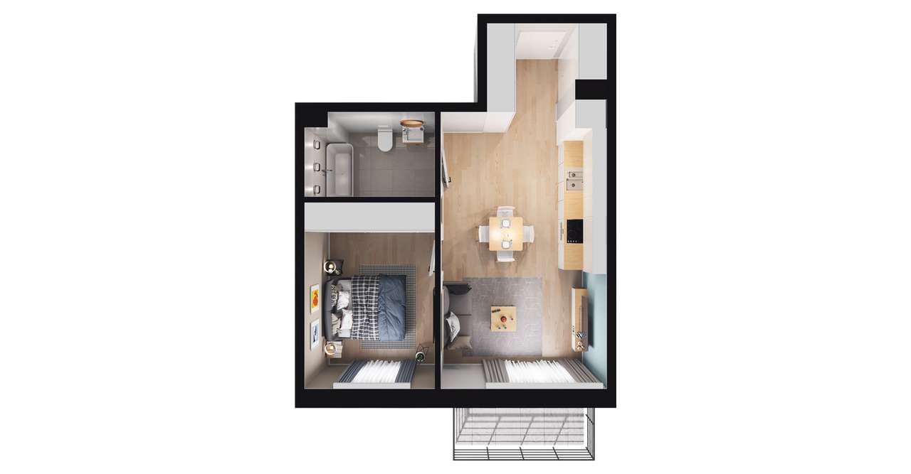 2-pokojowe mieszkanie 32m2 + loggia