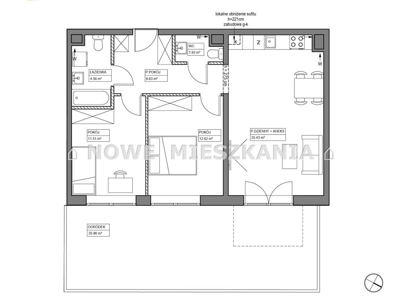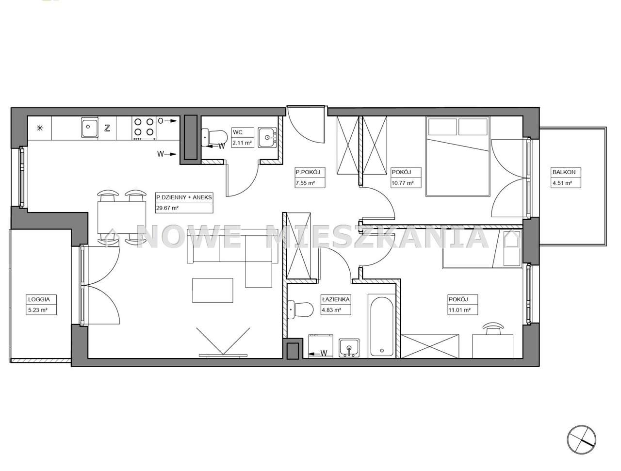 3-pokojowe mieszkanie 58m2 + balkon Bezpośrednio