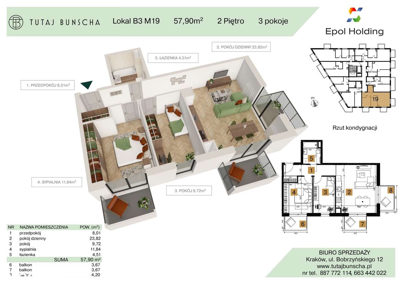 3-pokojowe mieszkanie 57 m2 + 3 balkony 3 i 3 i 4 m2, Bezpośrednio