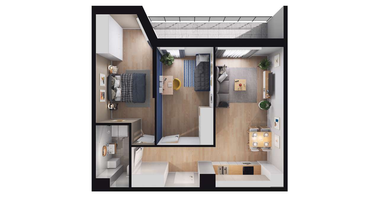 3-pokojowe mieszkanie 45m2 + loggia