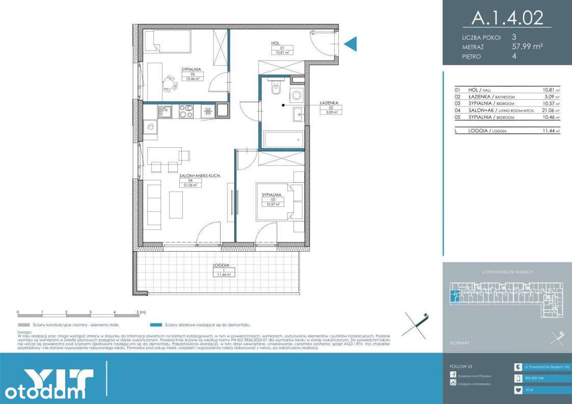 3-pokojowe mieszkanie 57m2 + loggia Bez Prowizji