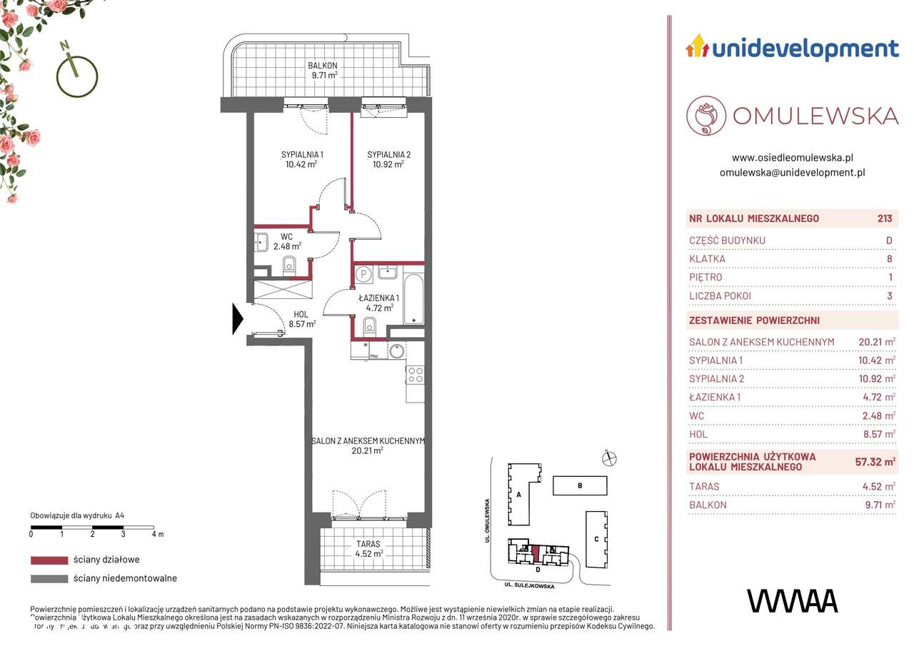 3-pokojowe mieszkanie 57m2 + taras Bezpośrednio