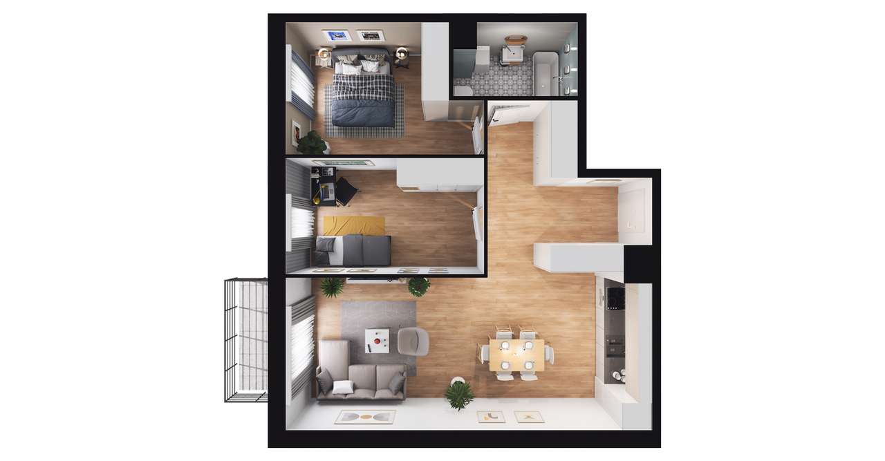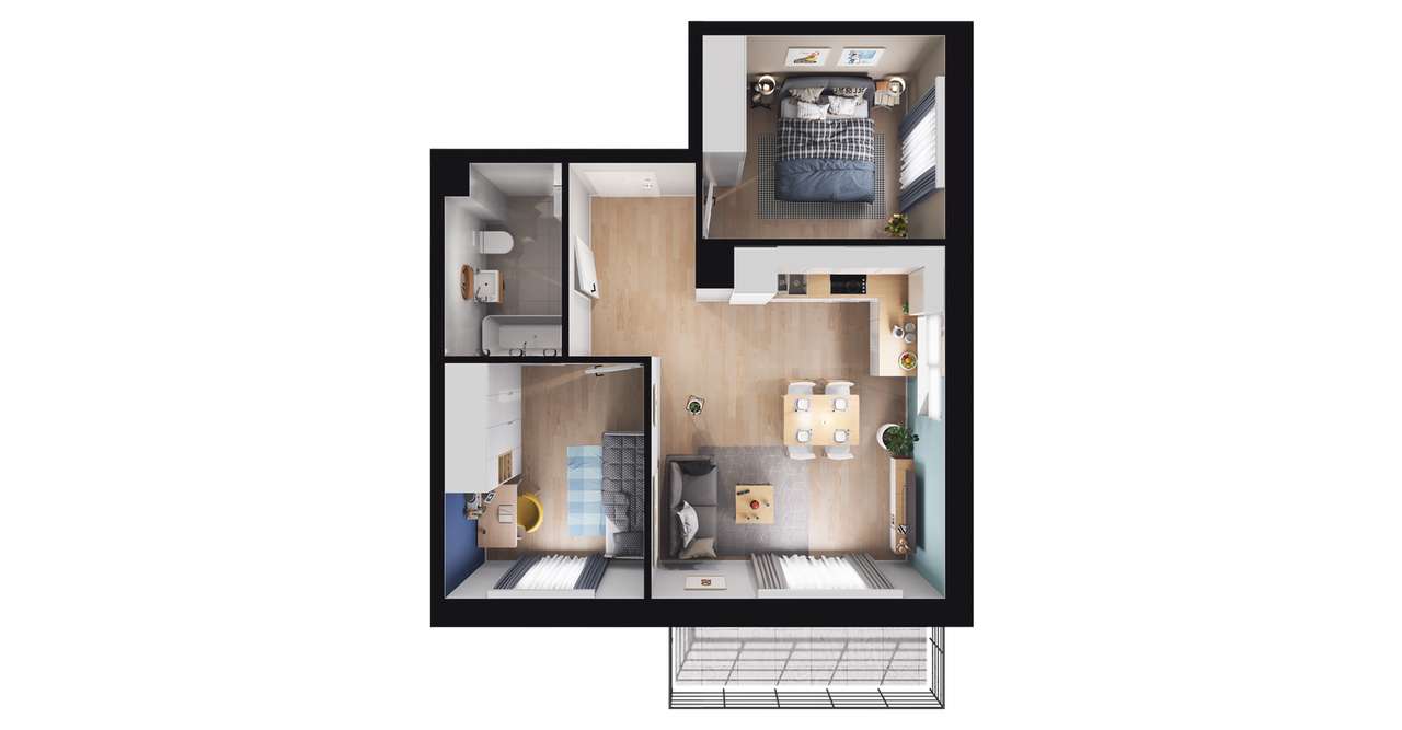 3-pokojowy apartament inwestycyjny 44m2 + balkon