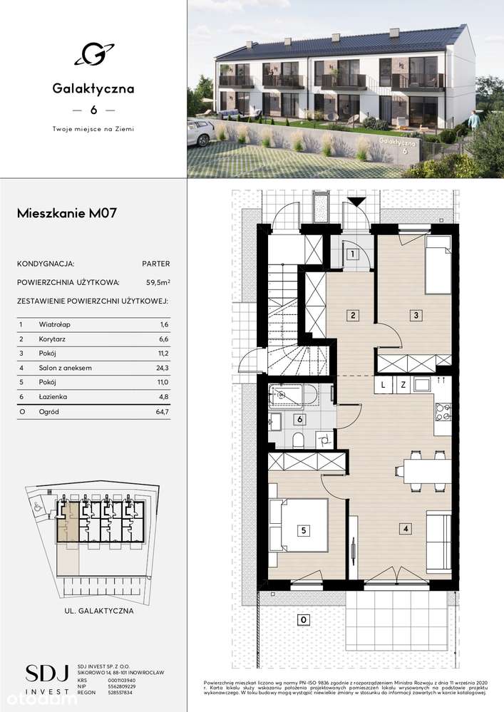 Galaktyczna 6 - mieszkanie 3 pokoje z ogródkiem!