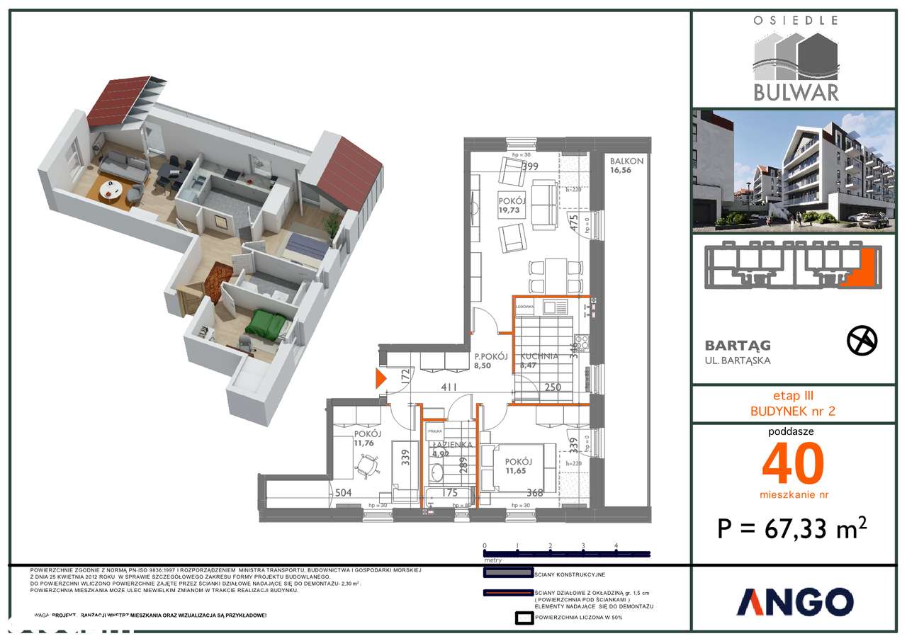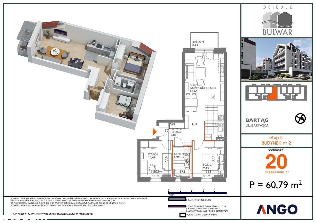 3 pokoje, ogródek, 1 pięro, 63,01m2 + poddasze