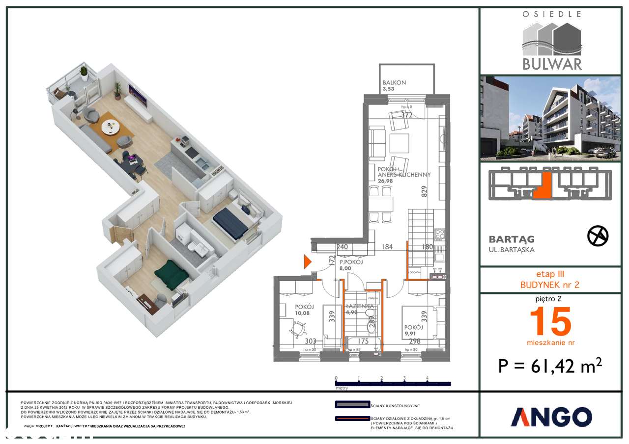 3 pokojowe mieszkanie z ogródkiem E 0.2