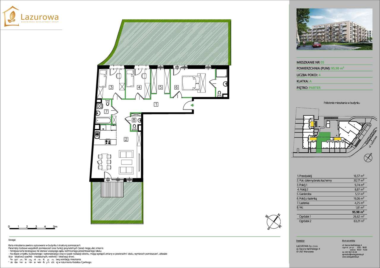 4 pok.95,98m2 -Garderoba z oknem ; dwa ogródki 63m2 i 27m2 -klucze Maj