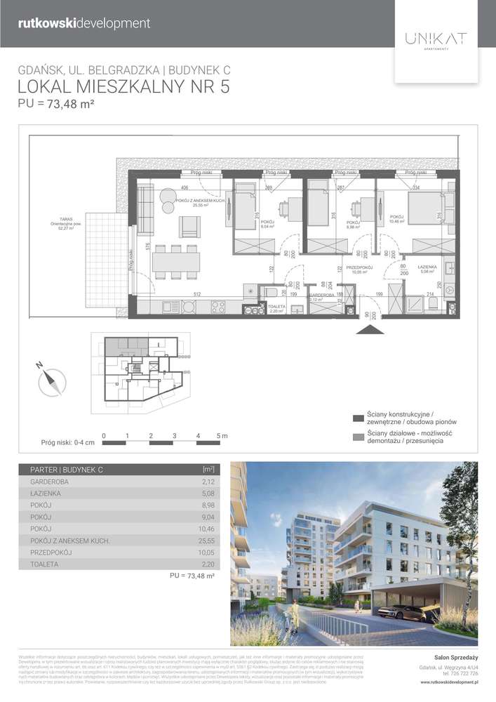 73 m2 Gdańsk Siedlce: 4 pokoje, 20 m2 taras, ostatnie 6 piętro, eks. S