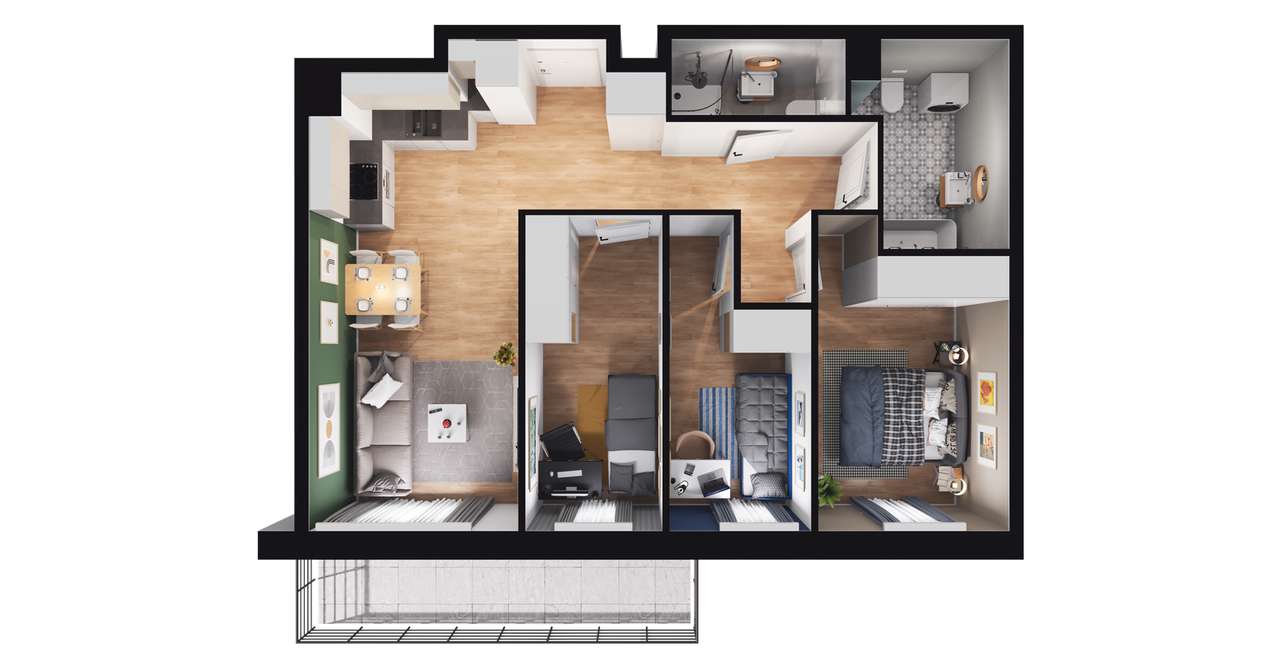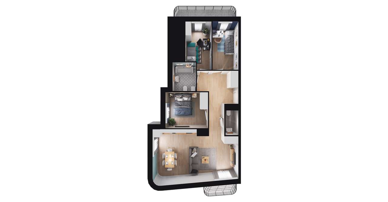 4-pokojowe mieszkanie 69m2 + 2 balkony
