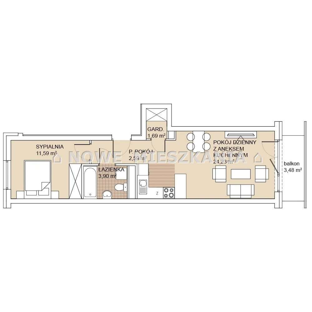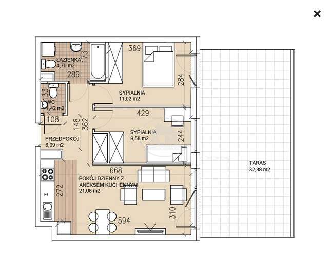 - 68.89 m²