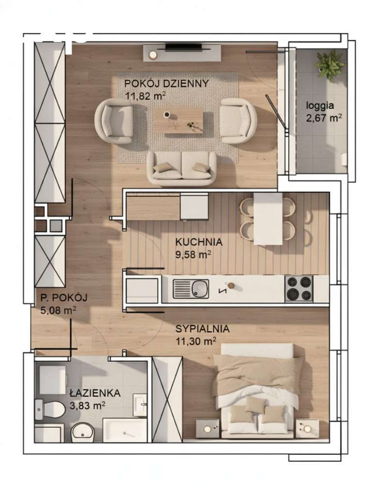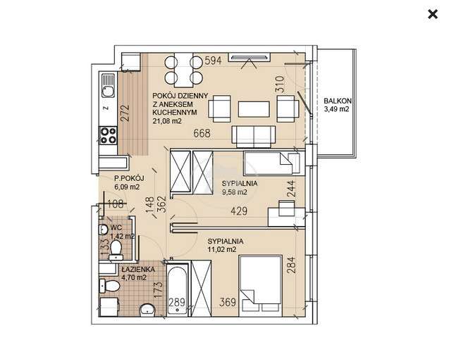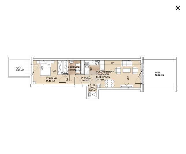 1 195 844 zł17 384 zł/m²- Liczba pokoi