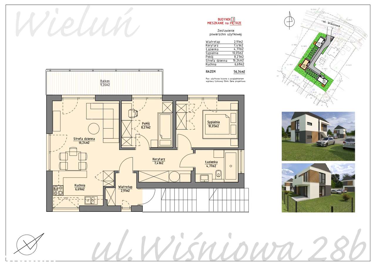 Nowe miejsce na mapie Wielunia! Powstaje bardzo kameralne osiedle składające się z sześciu mieszkań w Wieluniu. Lokalizacja to ul. Wiśniowej 28b. Będą to trzy budynki na ogrodzonej działce, w każdym b...