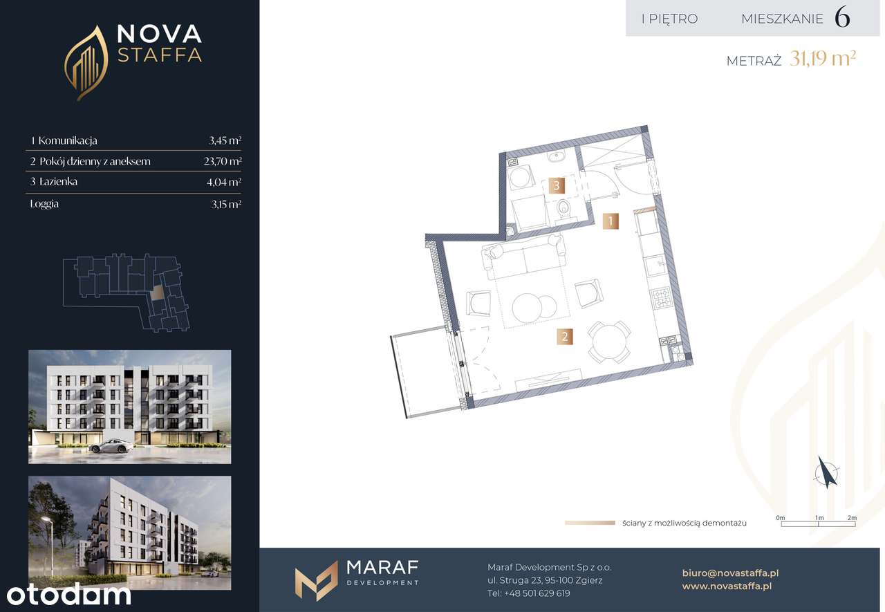 Kawalerka z loggią w nowoczesnym budynku z windą – I piętro